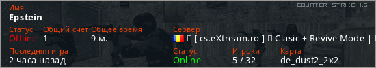 Играет на Counter Strike 1.6 сервере. Страна: РумынияПервый раз замечен 02:14 18.03.2026