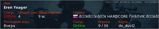 Последний раз был в сети Вчера Игрок с таким ником замечен на 11 серверах