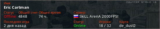 Играет на Counter Strike 1.6 сервере. Страна: РоссияПервый раз замечен 18:20 02.02.2023