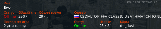 Последний раз был в сети Вчера Игрок с таким ником замечен на 12 серверах