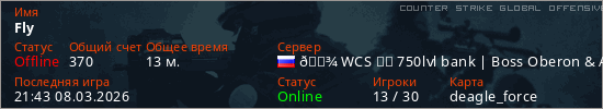 Играет на Counter Strike Global Offensive сервере. Страна: РоссияПервый раз замечен 11:49 08.03.2026