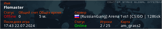 Играет на Counter Strike Global Offensive сервере. Страна: РоссияПервый раз замечен 17:29 22.07.2024