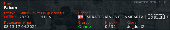 Последний раз был в сети 08:13 17.04.2024 Игрок с таким ником замечен на 26 серверах