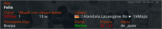 Последний раз был в сети Вчера Игрок с таким ником замечен на 34 серверах