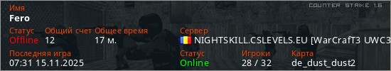 Последний раз был в сети 07:31 15.11.2025 Игрок с таким ником замечен на 10 серверах