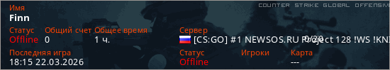 Играет на Counter Strike Global Offensive сервере. Страна: РоссияПервый раз замечен 19:19 12.03.2026
