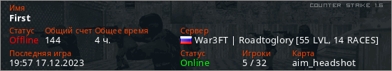 Играет на Counter Strike 1.6 сервере. Страна: РоссияПервый раз замечен 03:15 24.09.2022