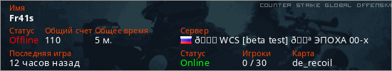 Играет на Counter Strike Global Offensive сервере. Страна: РоссияПервый раз замечен 15:05 07.03.2026