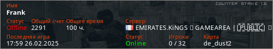 Играет на Counter Strike 1.6 сервере. Страна: ФранцияПервый раз замечен 07:26 13.12.2021