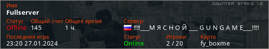 Играет на Counter Strike 1.6 сервере. Страна: РоссияПервый раз замечен 13:06 07.05.2022