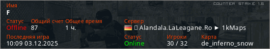 Играет на Counter Strike 1.6 сервере. Страна: ГерманияПервый раз замечен 16:35 09.04.2024