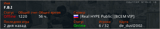 Играет на Counter Strike 1.6 сервере. Страна: РоссияПервый раз замечен 21:25 14.12.2023