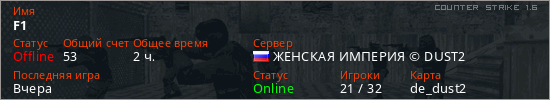 Последний раз был в сети Вчера Игрок с таким ником замечен на 43 серверах