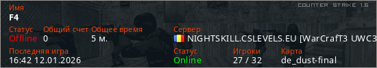 Играет на Counter Strike 1.6 сервере. Страна: РумынияПервый раз замечен 16:40 12.01.2026