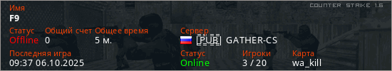 Играет на Counter Strike 1.6 сервере. Страна: РоссияПервый раз замечен 09:35 06.10.2025