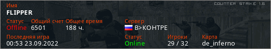 Играет на Counter Strike 1.6 сервере. Страна: РоссияПервый раз замечен 08:47 11.02.2020