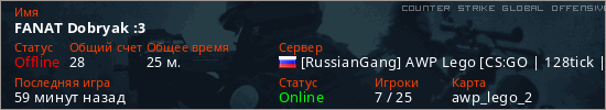 Играет на Counter Strike Global Offensive сервере. Страна: РоссияПервый раз замечен 15:13 24.12.2025