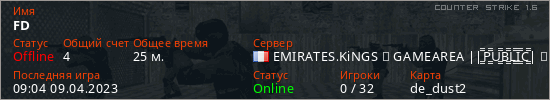 Играет на Counter Strike 1.6 сервере. Страна: ФранцияПервый раз замечен 07:45 29.10.2022