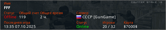 Играет на Counter Strike 1.6 сервере. Страна: РоссияПервый раз замечен 16:21 26.02.2024
