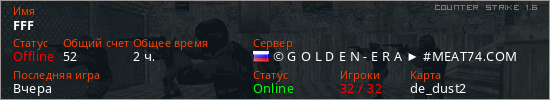 Последний раз был в сети Вчера Игрок с таким ником замечен на 33 серверах