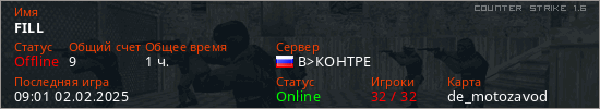 Играет на Counter Strike 1.6 сервере. Страна: РоссияПервый раз замечен 22:57 10.11.2019