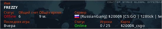 Играет на Counter Strike Global Offensive сервере. Страна: РоссияПервый раз замечен 22:15 22.12.2025