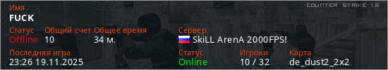 Последний раз был в сети 23:26 19.11.2025 Игрок с таким ником замечен на 35 серверах