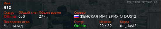 Последний раз был в сети Вчера Игрок с таким ником замечен на 8 серверах