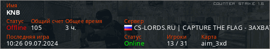 Играет на Counter Strike 1.6 сервере. Страна: РоссияПервый раз замечен 16:06 07.12.2020