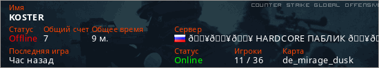 Играет на Counter Strike Global Offensive сервере. Страна: РоссияПервый раз замечен 07:04 19.04.2026
