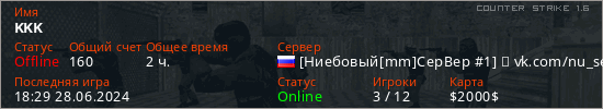 Играет на Counter Strike 1.6 сервере. Страна: РоссияПервый раз замечен 18:49 21.04.2022