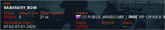 Играет на Counter Strike Global Offensive сервере. Страна: РоссияПервый раз замечен 10:13 02.09.2025