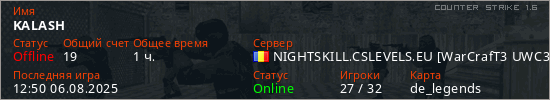 Последний раз был в сети 12:50 06.08.2025 Игрок с таким ником замечен на 14 серверах