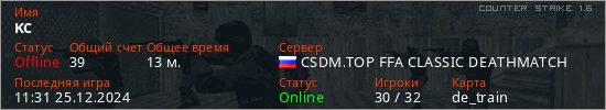 Играет на Counter Strike 1.6 сервере. Страна: РоссияПервый раз замечен 18:36 03.06.2023