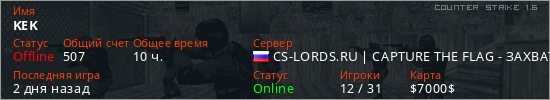 Последний раз был в сети 2 дня назад Игрок с таким ником замечен на 16 серверах