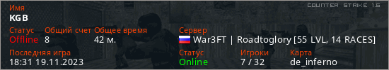 Последний раз был в сети 18:31 19.11.2023 Игрок с таким ником замечен на 27 серверах