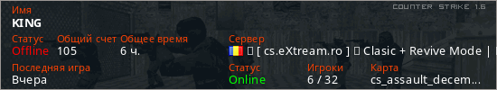 Играет на Counter Strike 1.6 сервере. Страна: РумынияПервый раз замечен 17:13 23.10.2024