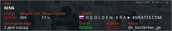 Последний раз был в сети 2 дня назад Игрок с таким ником замечен на 50 серверах