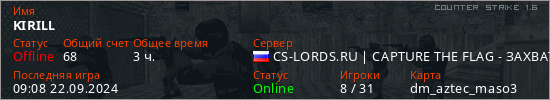 Играет на Counter Strike 1.6 сервере. Страна: РоссияПервый раз замечен 05:36 23.04.2022