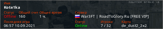 Играет на Counter Strike 1.6 сервере. Страна: РоссияПервый раз замечен 12:37 03.09.2021