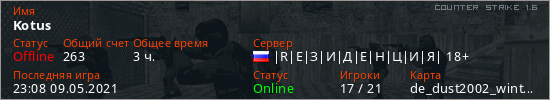 Последний раз был в сети 23:08 09.05.2021 Игрок с таким ником замечен на 2 серверах