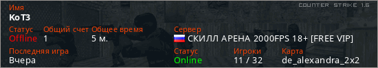 Последний раз был в сети Вчера Игрок с таким ником замечен на 11 серверах