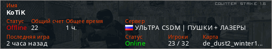 Играет на Counter Strike 1.6 сервере. Страна: РоссияПервый раз замечен 09:04 09.07.2025