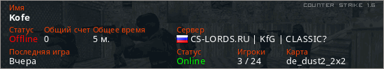 Последний раз был в сети Вчера Игрок с таким ником замечен на 5 серверах