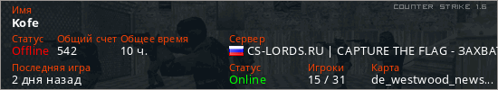 Играет на Counter Strike 1.6 сервере. Страна: РоссияПервый раз замечен 15:53 24.07.2021