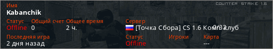 Играет на Counter Strike 1.6 сервере. Страна: РоссияПервый раз замечен 16:59 28.09.2025