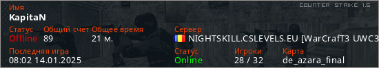 Последний раз был в сети 08:02 14.01.2025 Игрок с таким ником замечен на 4 серверах