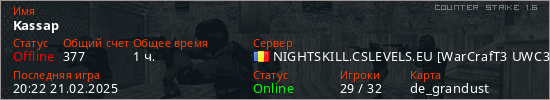 Последний раз был в сети 20:22 21.02.2025 Игрок с таким ником замечен на 2 серверах