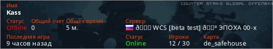 Играет на Counter Strike Global Offensive сервере. Страна: РоссияПервый раз замечен 13:22 07.03.2026