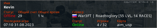 Играет на Counter Strike 1.6 сервере. Страна: РоссияПервый раз замечен 14:49 13.03.2022